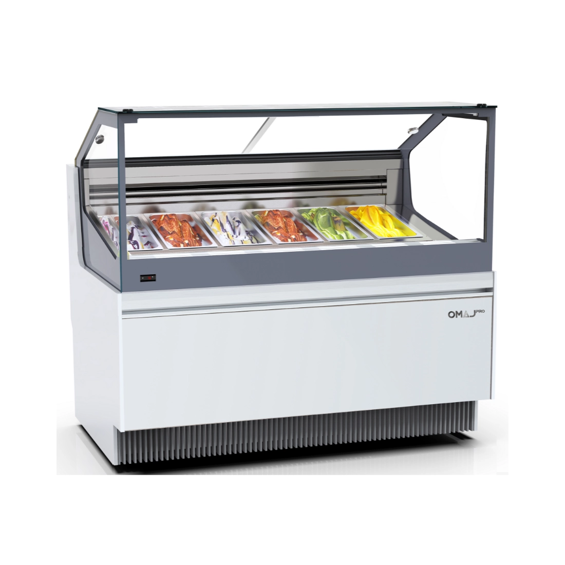 خزانة عرض الآيس كريم صف واحد.