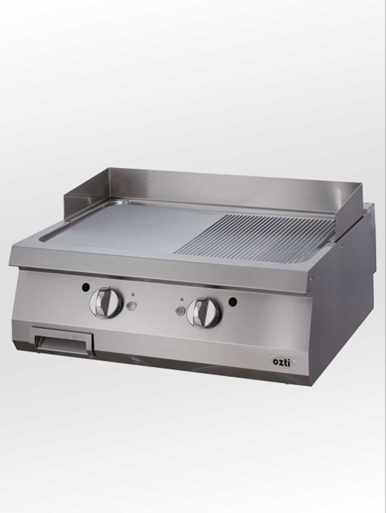 * 1/2 سطح طهي مسطح و 2/ 1 سطح مضلع بسمك 15 ملم من الفولاذ