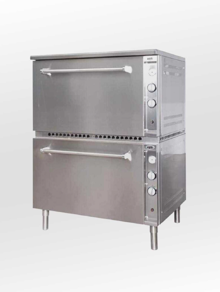 *فرن يعمل بالغاز الساكن من الأسفل، ويُسخّن من الأعلى بواسطة مقاومات لكل طابق