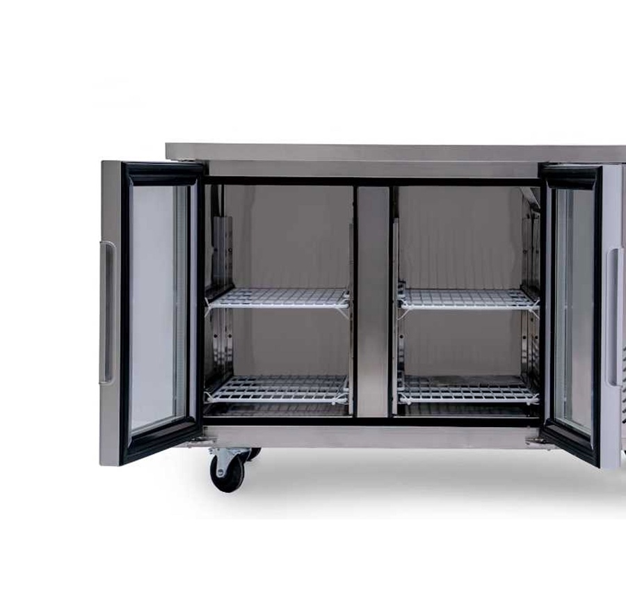 تأتي بأبواب زجاجية كاملة تمنحها مظهرًا أنيقًا وجذابًا، مما يمكنها من الاندماج بسهولة مع أي تصميم داخلي ويمكن عرض المحتويات بوضوح.